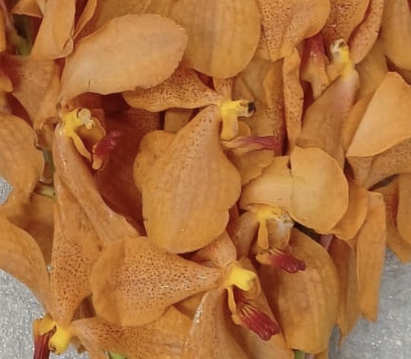 Exotic and opulent, these Orange Bom Dendrobiums are sure to make a breathtaking sight at your wedding or special event. Our grower in Thailand takes an orange dendrobium orchid laden with blossoms.