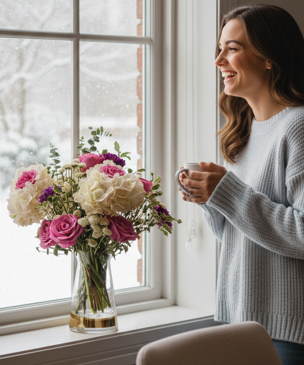 Roses and hydrangea in this bouquet are just stunning and a Calyx team favorite! When we look at this bouquet, it just makes us smile. Send to your loved one or anyone to create the same feeling. It will be contagious.