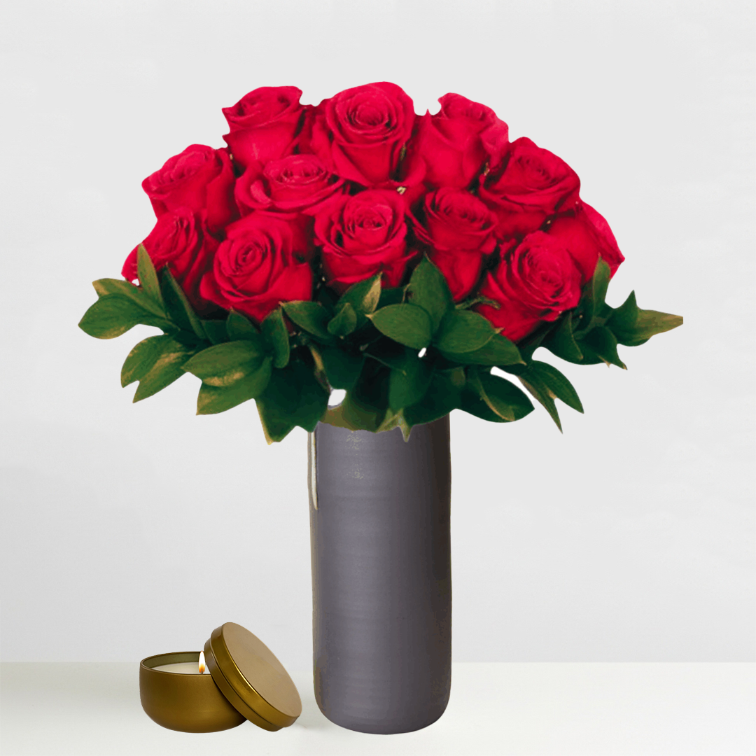 A dozen red roses in a most striking shade of red will arrive to fill the home or office of someone special in your life. Lovely displayed the luxurious bouquet in our ceramic vessel.