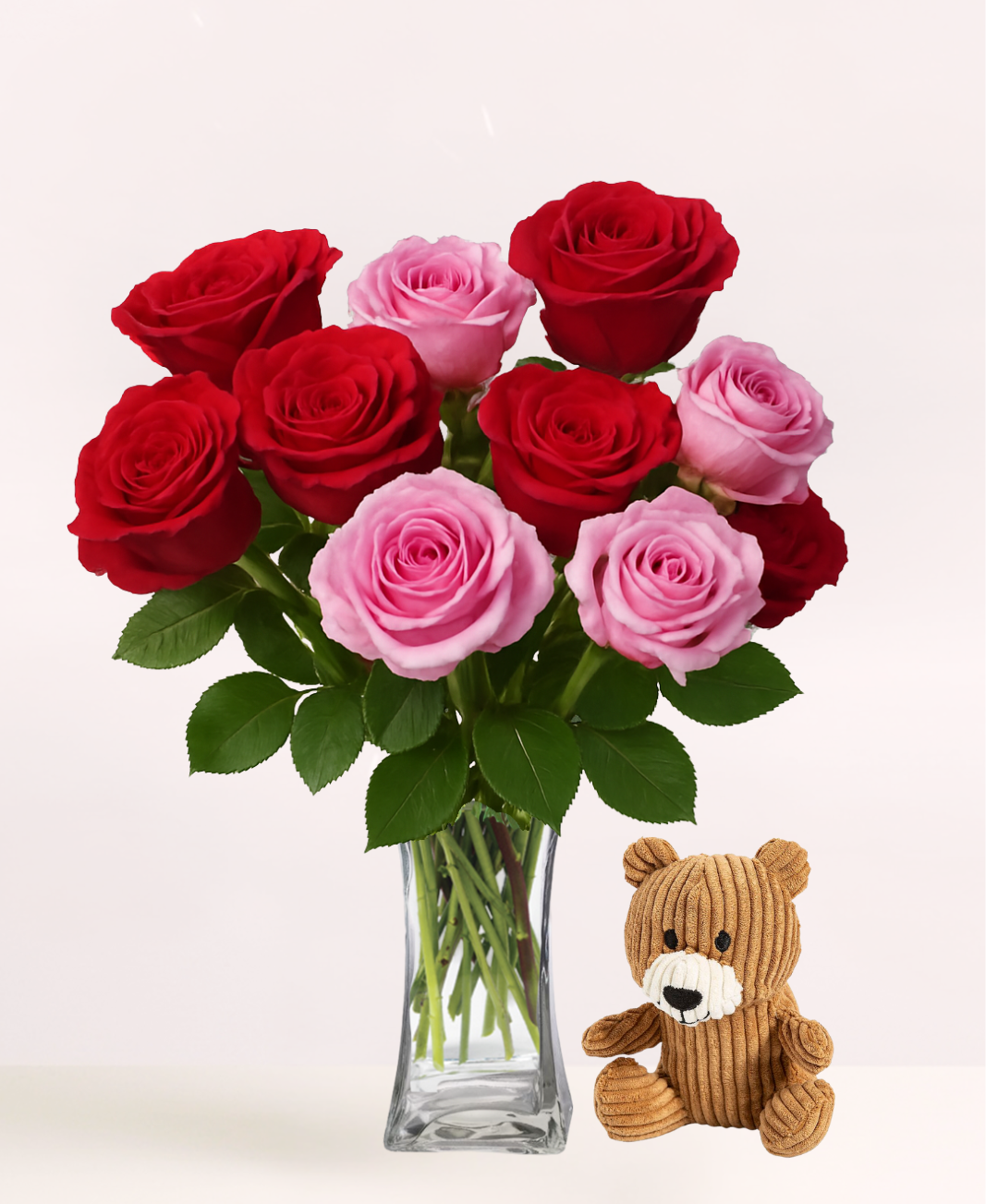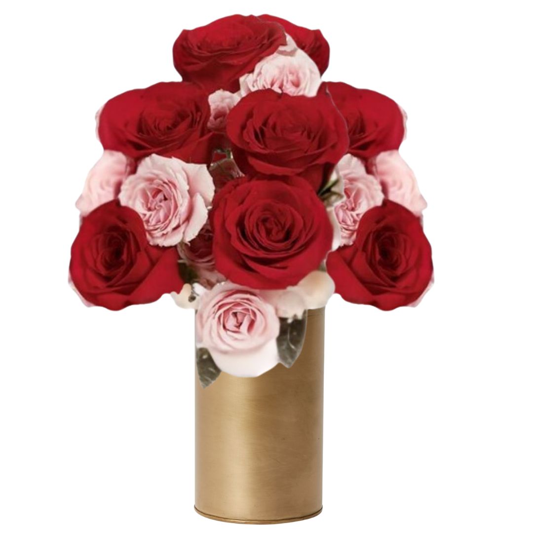 Serious sweetheart or secret crush, will be swept off their feet by our sweet serenade of red and pink roses. Over a dozen Radiant red & pink roses are known for their blooms. Our love-professing vase completes this charming offering.