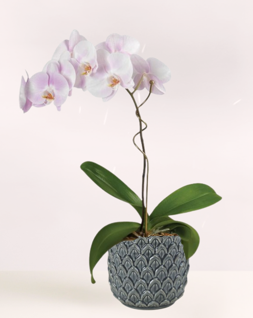 Gallery gorgeous. This orchid’s canvas of Starlight Pink dark hues of burgundy blooms is a masterpiece to behold. Anyone lucky enough to receive it will promptly and proudly display it as it arrives in our ceramic cachepot. Please note a darker orchid may be sent for best quality.